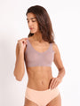 Crafted from ultra-soft, stretchy fabric, the Eve Chantelle Seamless Bralette provides a second-skin feel that adapts perfectly to your body natural contours. The seamless, laser-cut design ensures a smooth, invisible look under any outfit, making it ideal for everyday wear. The soft blush tone adds a touch of femininity and sophistication, making this bralette an essential addition to your lingerie collection.