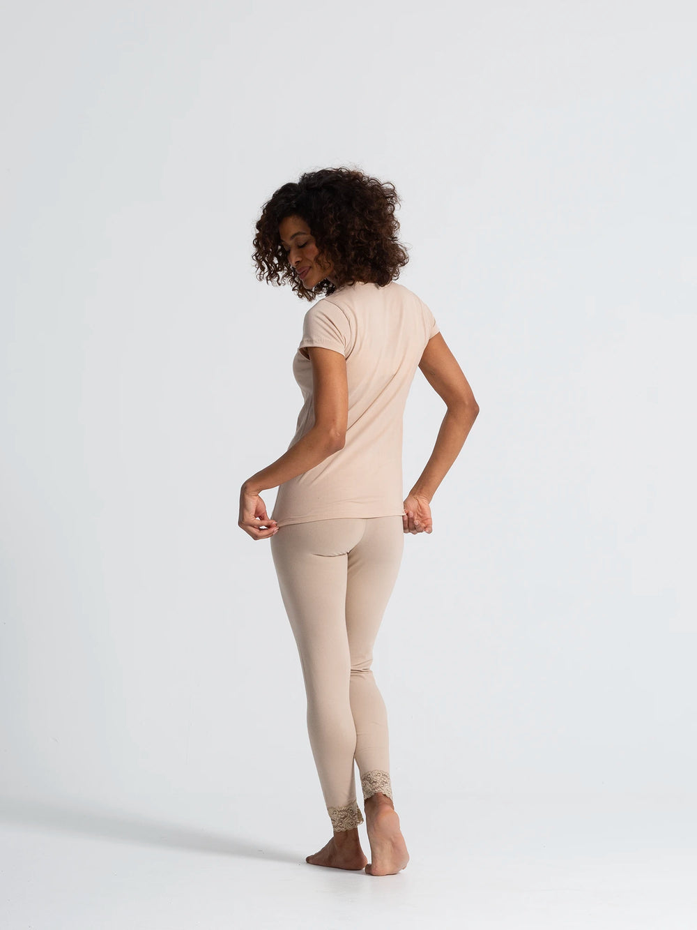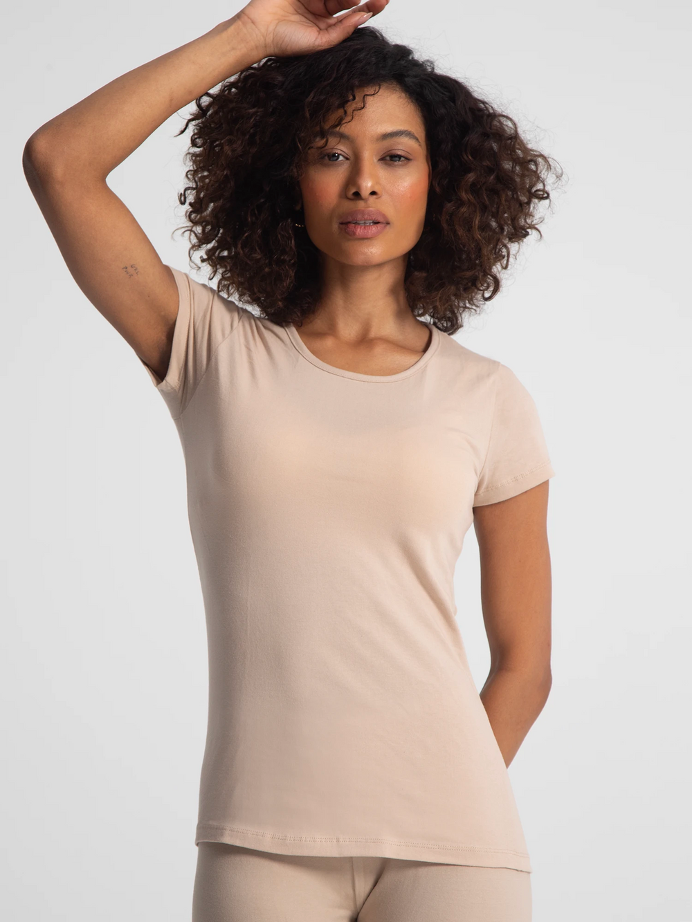 An essential and basic everyday top suited for all your needs. Your body will appreciate this comfy half-sleeved tee.