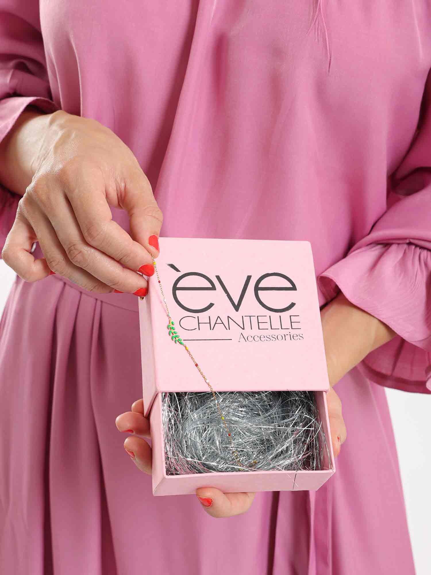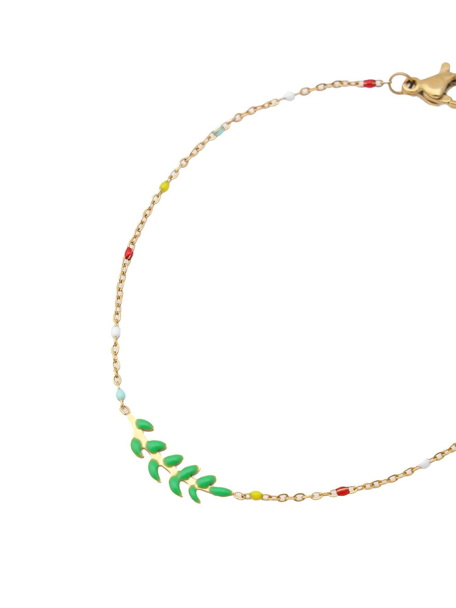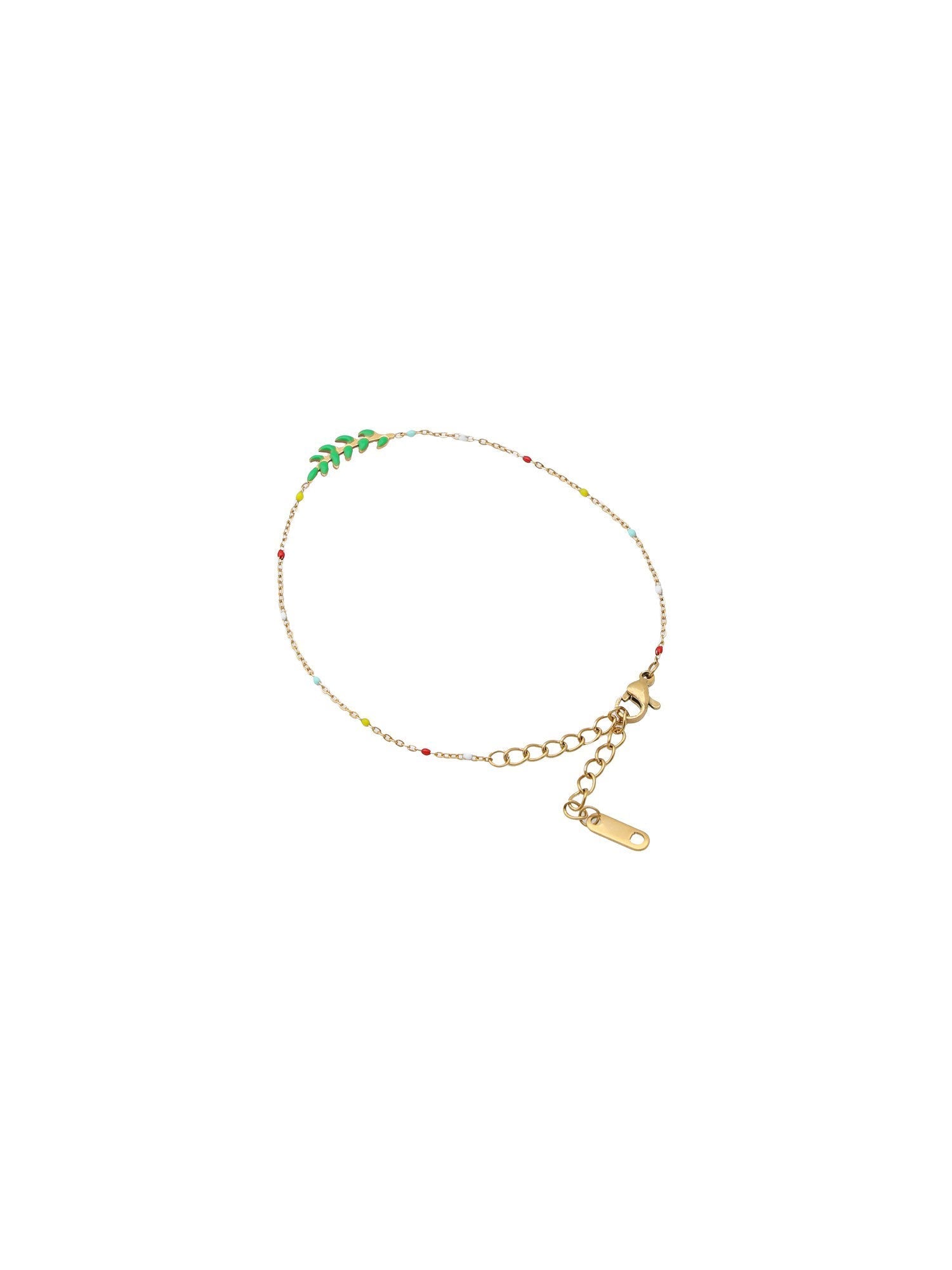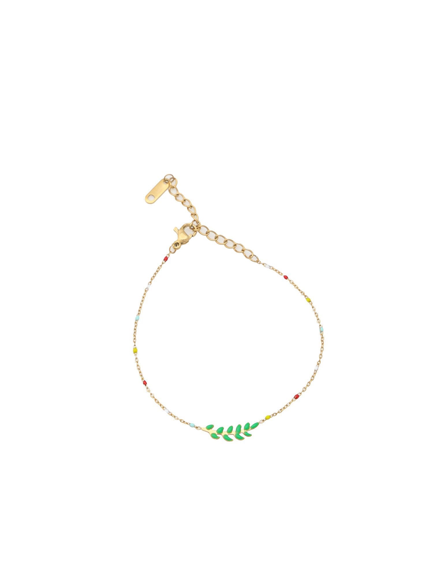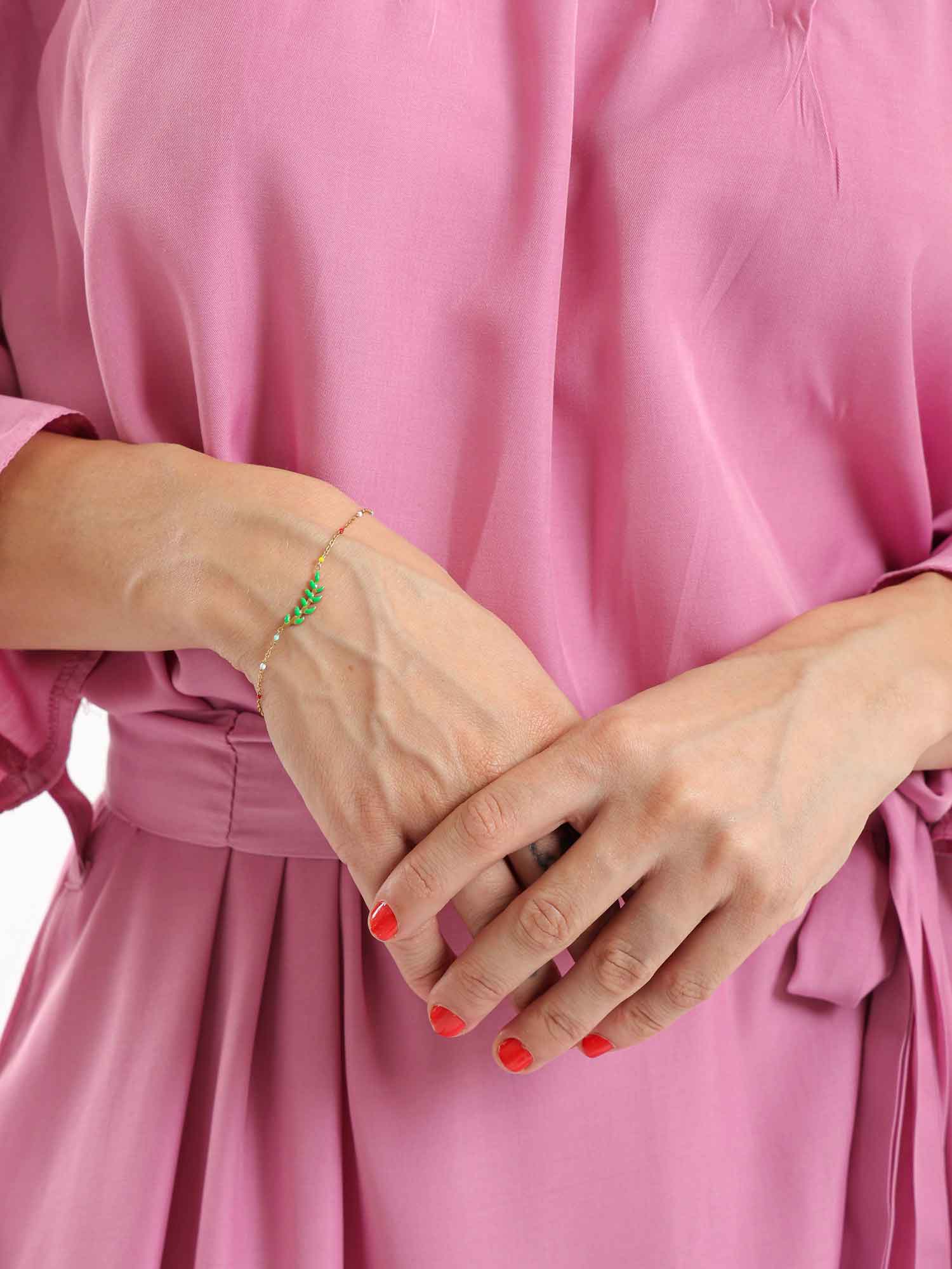 Discover the 'Glimmer' bracelet, a whisper of enchantment with its small green stones that twinkle like hidden forest gems.