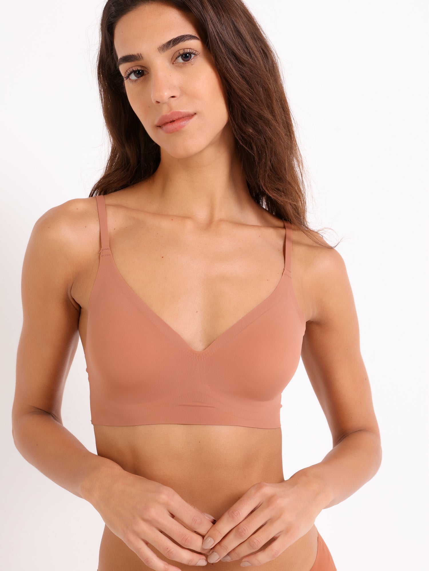 Introducing the Eve Chantelle Seamless Delight Bra, where modern design meets unparalleled comfort. Perfect for the stylish woman who values both support and sophistication, this bra offers a sleek and supportive fit suitable for everyday wear.